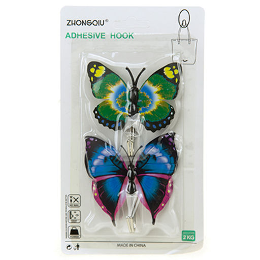 Крючок на липучке "Бабочка" металлический с пластмассовым основанием, 2 штуки, 6,5х7х1,8см, цвета микс, в блистере (Китай)