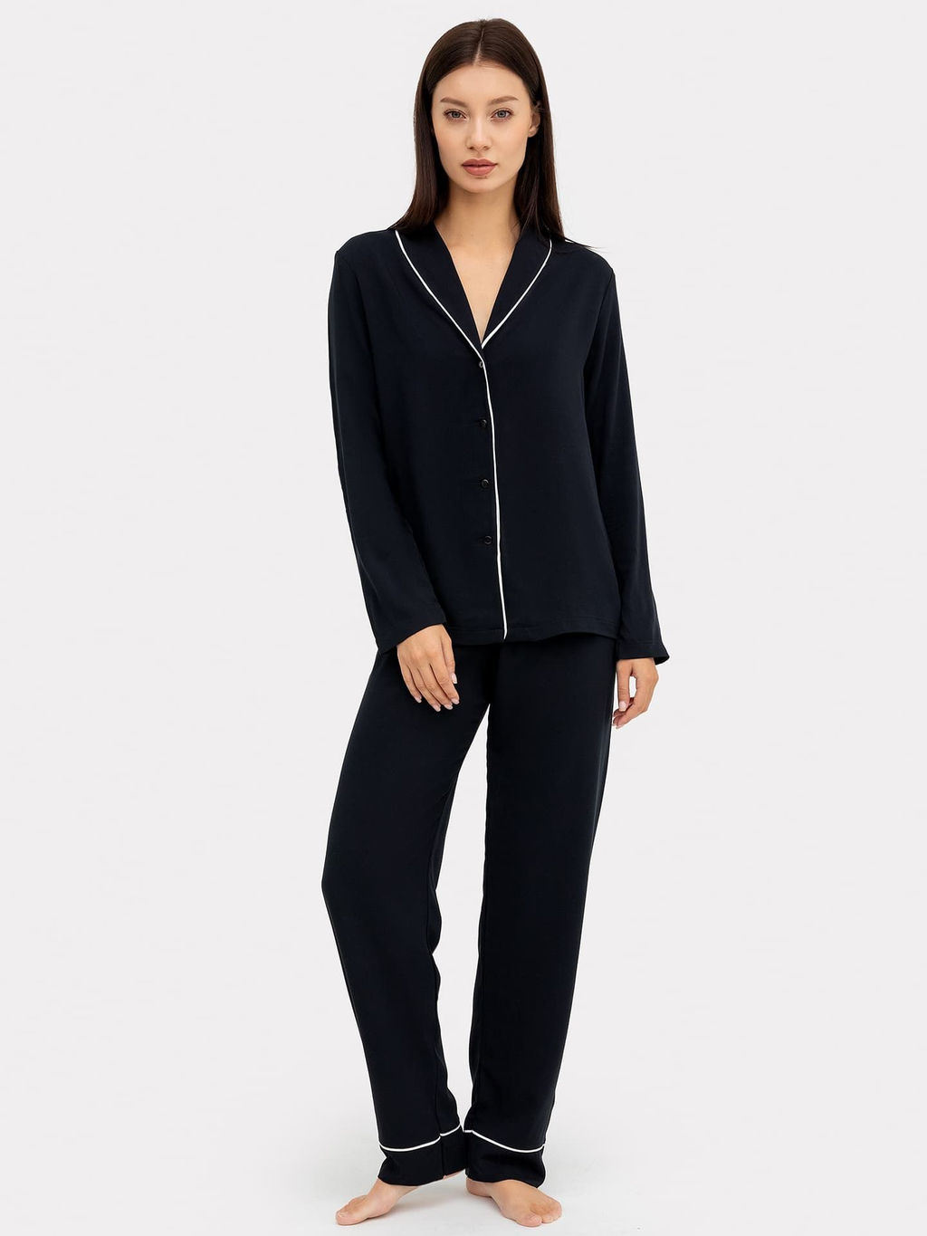 Комплект женский (жакет, брюки) темно-синий из вискозы
