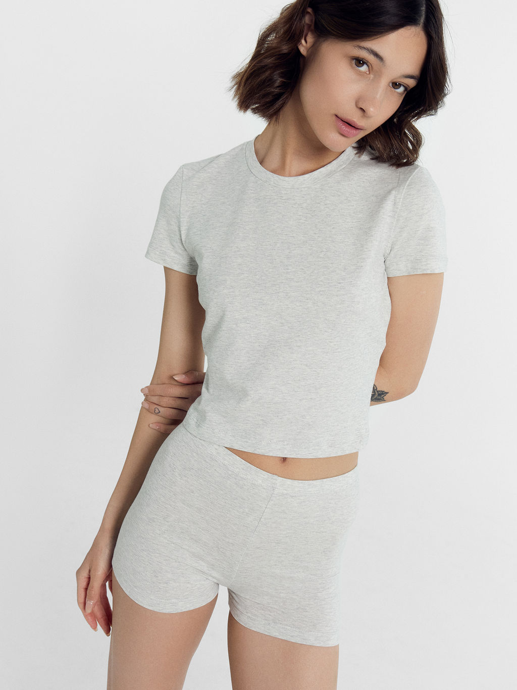 Комплект женский (футболка, шорты) в сером цвете