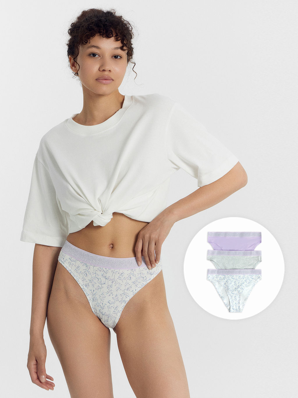 Цена за 2 штуки! Трусы женские слипы (3 шт.) молочно-бежевые с акварельными веточками