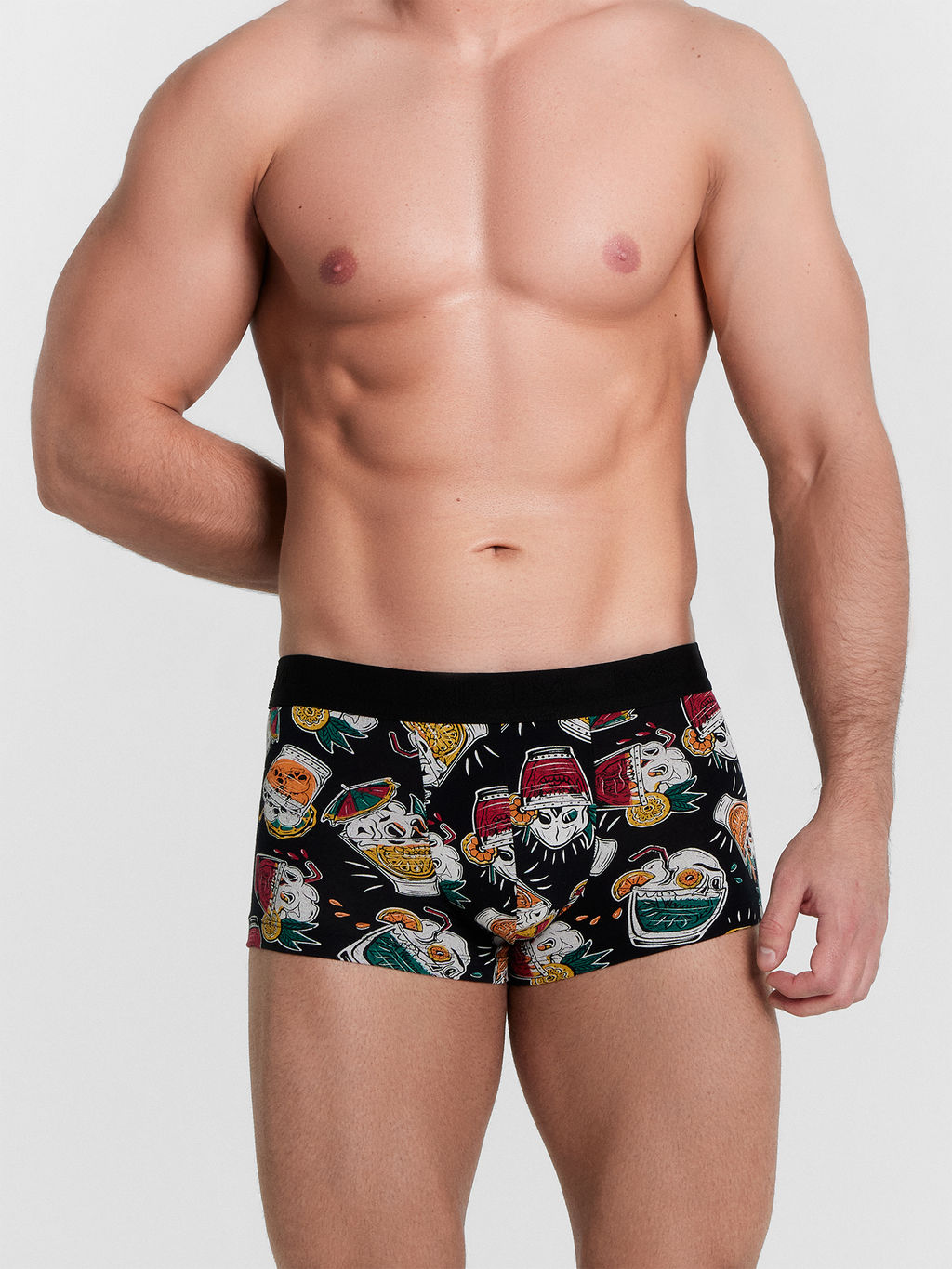 Цена за 2 штуки! Трусы мужские боксеры черные с принтом в виде коктейлей