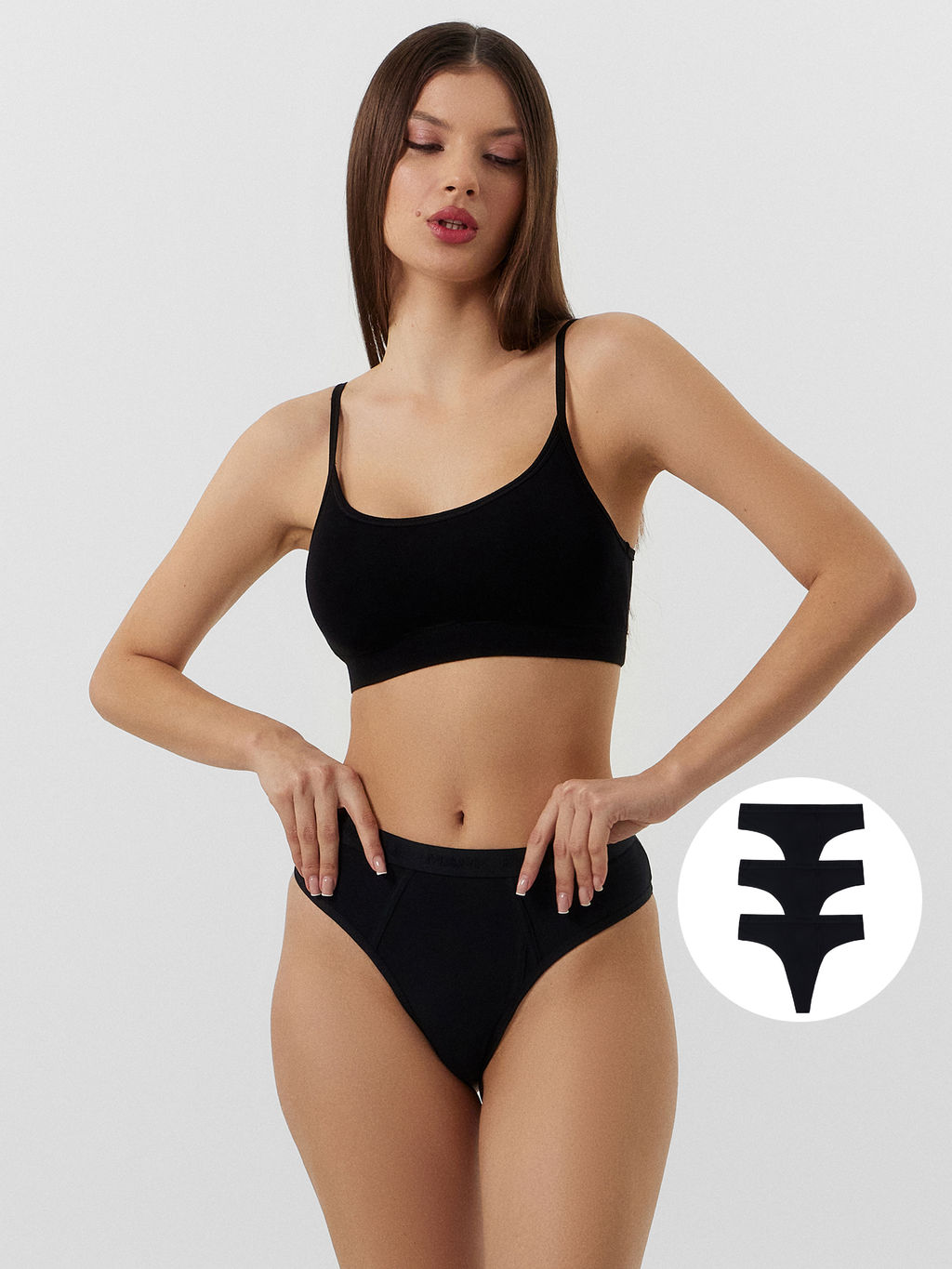 Цена за 2 штуки! Трусики бразилиана черные в наборе, 3 шт