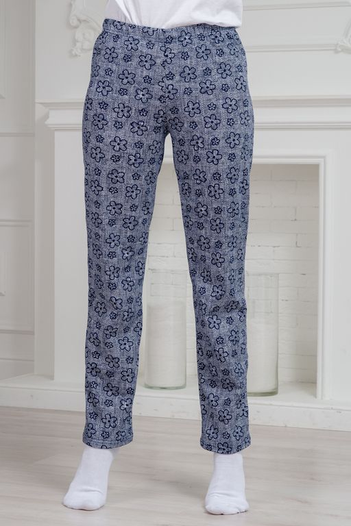 Брюки женские домашние из кулирки Барокко лен цветы полярная ночь