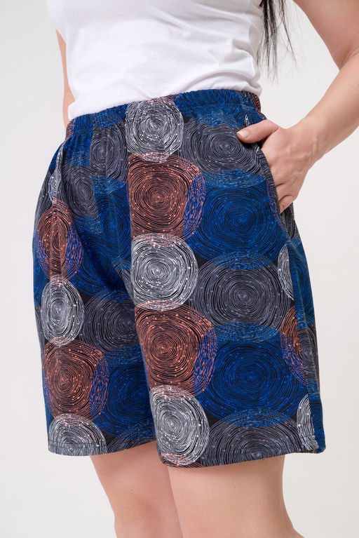 Шорты женские из кулирки Цветник спилы синие
