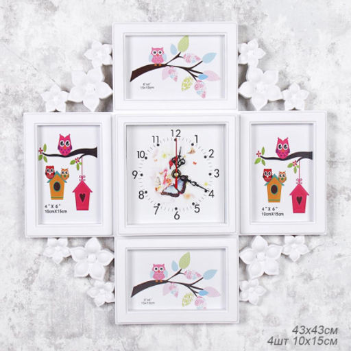 Фоторамка коллаж с часами / 083 /уп 18/ 4 фото