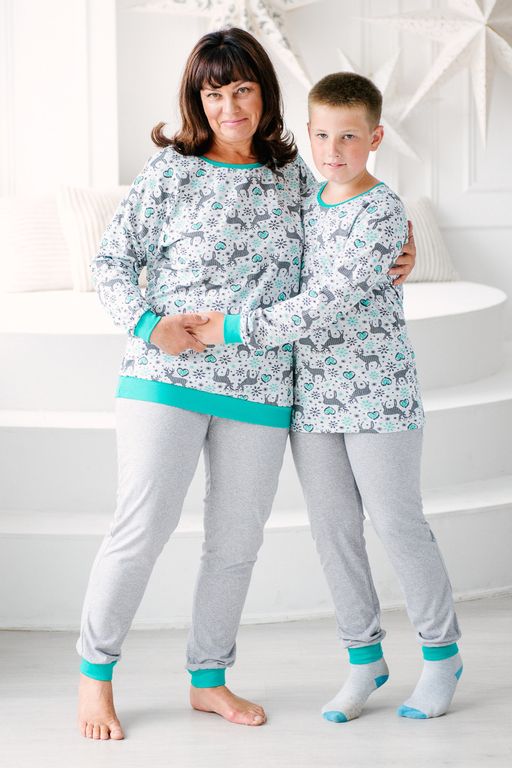 Пижама подростковая из джемпера и брюк из кулирки Олененок ментол