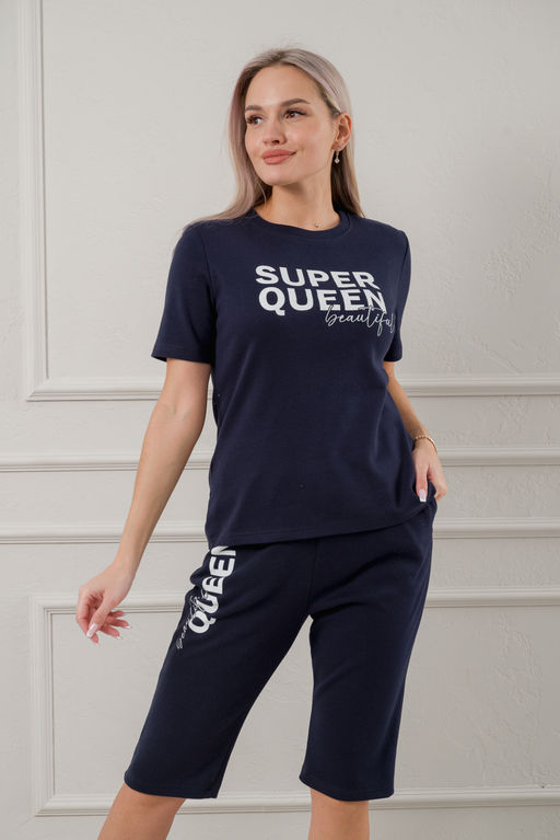 Пижама женская из бридж и футболки из интерлока Королева темно-синий