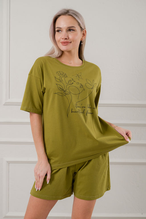 Пижама женская из кулирки Дива хаки макси