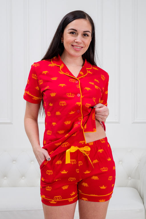 Пижама женская из жакета и шорт из кулирки Мальвина короны, красный