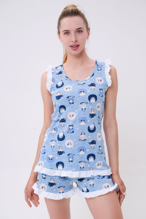 Пижама женская из майки и шорт из кулирки Флаффи кошки