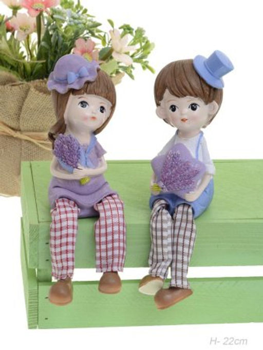 Цена за 2 шт. Фигурка Мальчик/Девочка с лавандой висячие ножки 2 штуки набор 22 см / 9935 /уп 60/