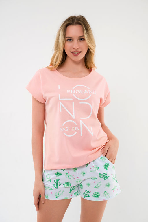 Пижама женская из футболки и шорт из кулирки Алиса розовый
