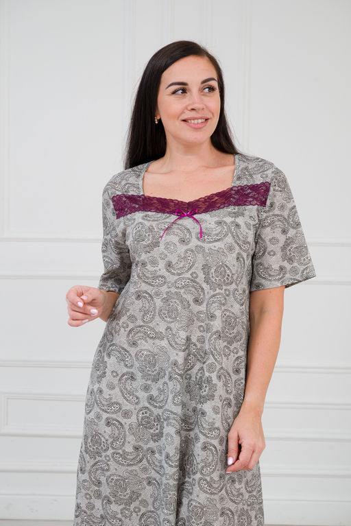 Ночная сорочка из кулирки Кружевница огурчик черно-бордовый