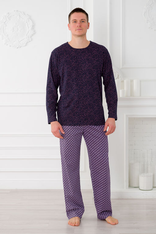 Пижама мужская из футболки с длинным рукавом и брюк из кулирки Генри геометрия макси