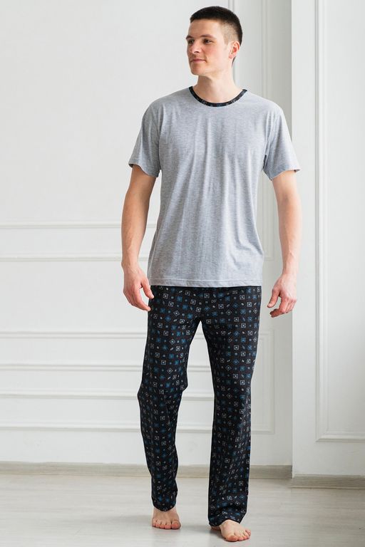 Пижама мужская из футболки с коротким рукавом и брюк из кулирки Генри антрацит