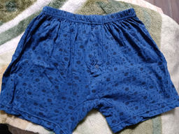 Трусы-боксеры мужские на пуговице из кулирки Знаки на серо-голубом