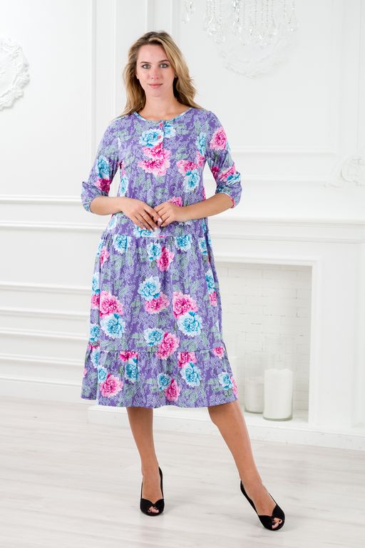 Платье женское из кулирки Амина пион на фиолетовом
