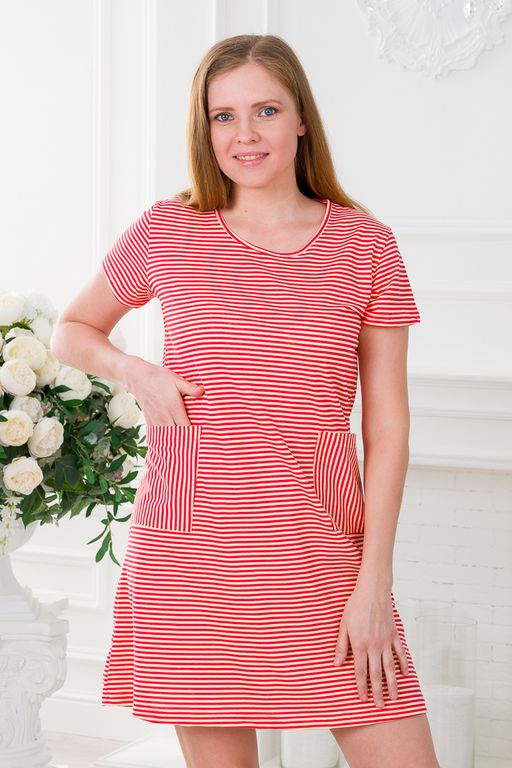Туника женская из кулирки Руслана красная полоса на бежевом