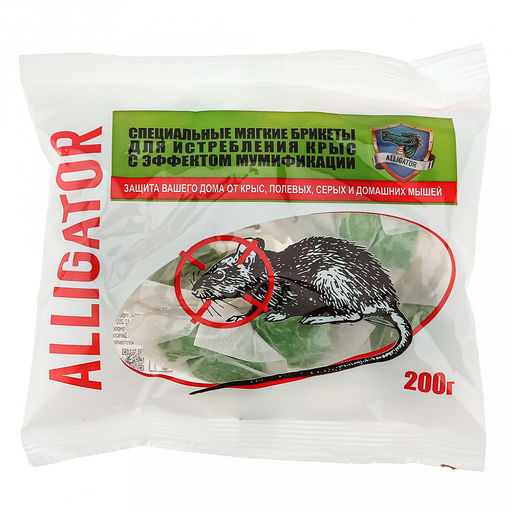 Средство от грызунов "Экстра" 200г мягкие брикеты, "Аллигатор" (Россия)