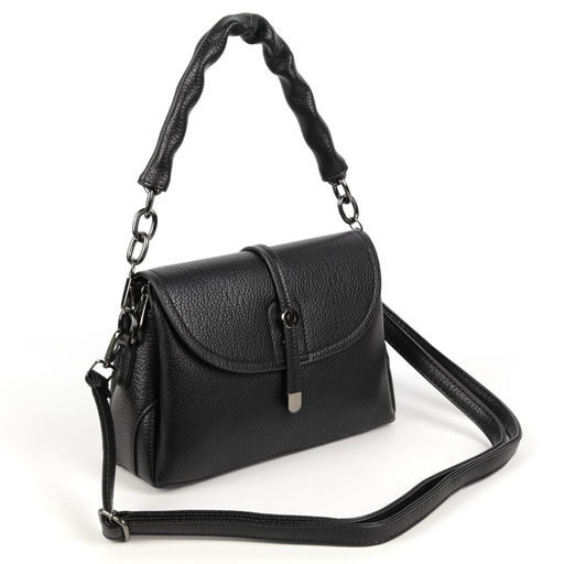 Женская сумка через плечо из эко кожи с тремя отделениями под клапаном 9802 Блек
