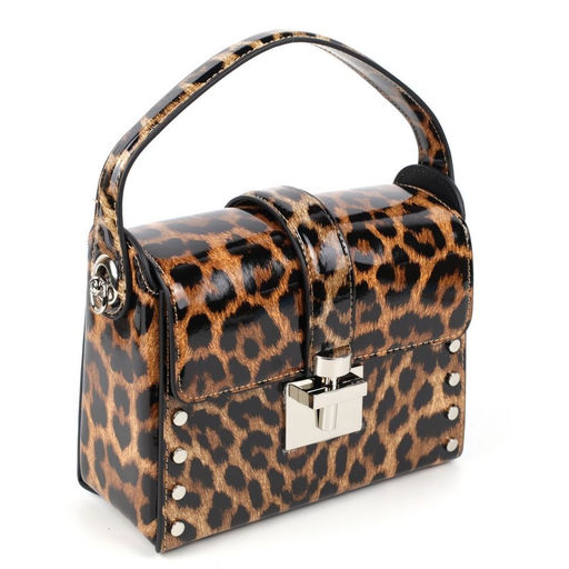 Маленькая женская кожаная леопардовая каркасная сумка с одной ручкой 0168-11