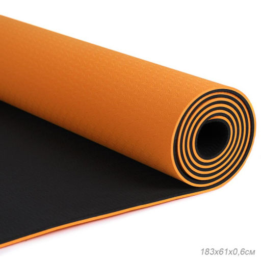 Коврик для йоги и фитнеса спортивный гимнастический двухслойный TPE 6мм. 183х61х0,6 цвет: оранжевый / YM2-TPE-6O / уп 12/