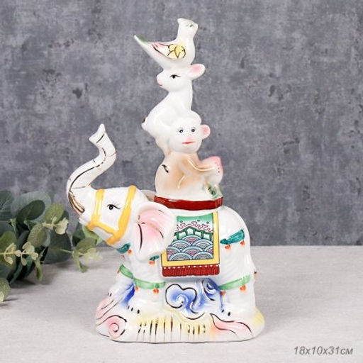 Статуэтка Пирамида: слон, обезьяна, заяц и птица 18х10х31 см / W2208А /уп 18/