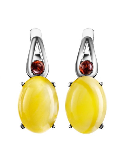 Серьги с натуральным медовым янтарем и вишневыми вставками Стамбул
