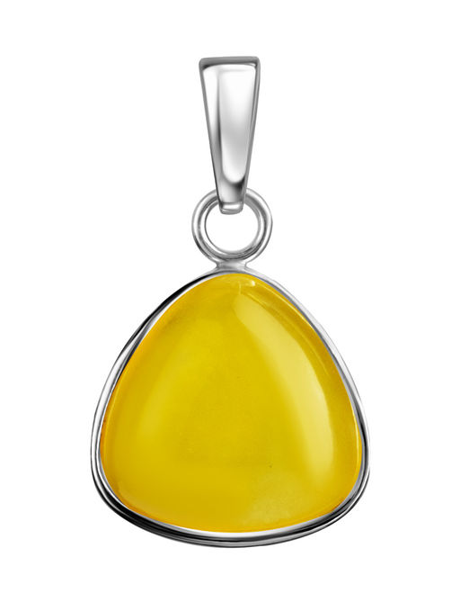 Треугольная подвеска с натуральным цельным янтарём медового цвета Дельта