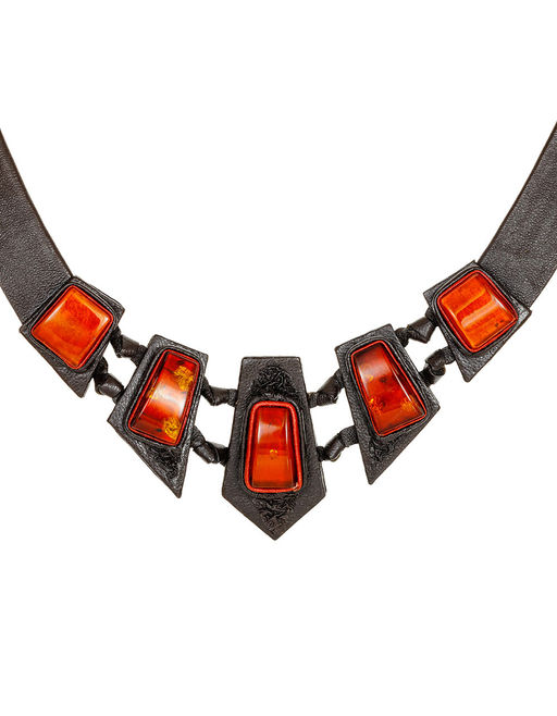 Ожерелье из кожи Амазонка с коньячным янтарём
