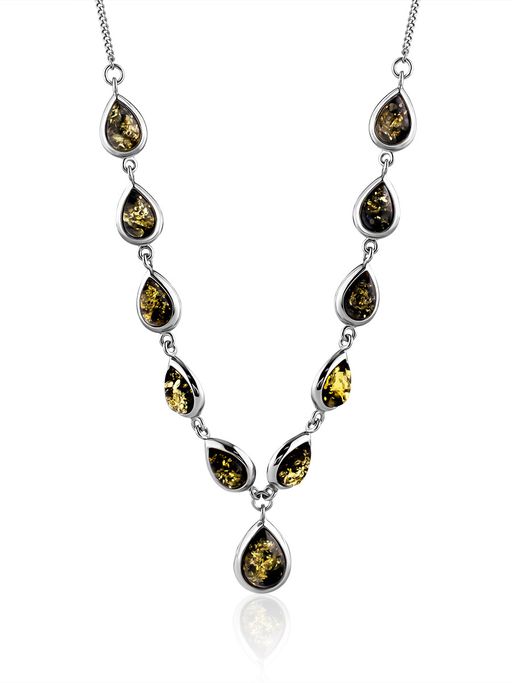 Яркое колье с натуральным янтарём зелёного цвета Фиори Корсика