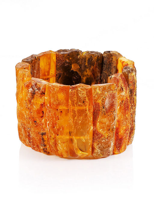 Объёмный браслет из натурального цельного янтаря с природной корочкой Помпеи