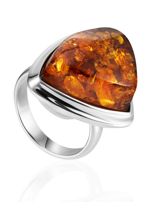 Кольцо из натурального искрящегося янтаря в элегантном обрамлении Глянец