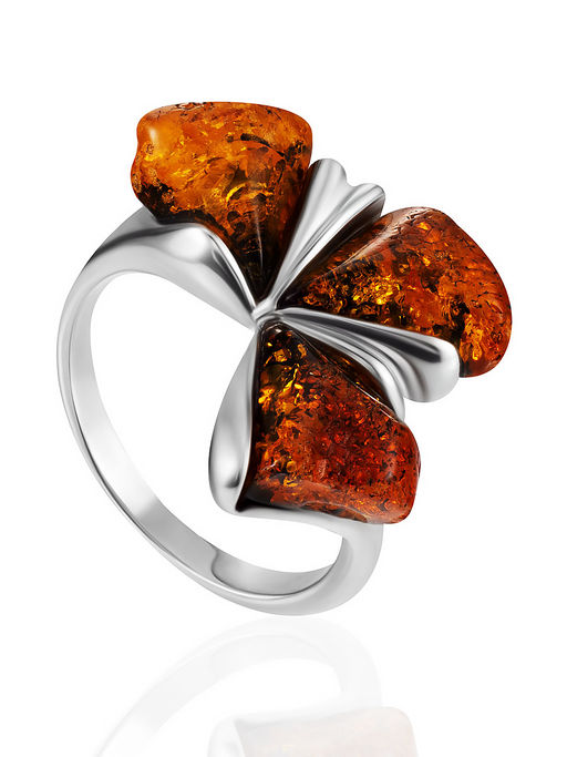 Эффектное кольцо из натурального балтийского янтаря зелёного цвета Сакура