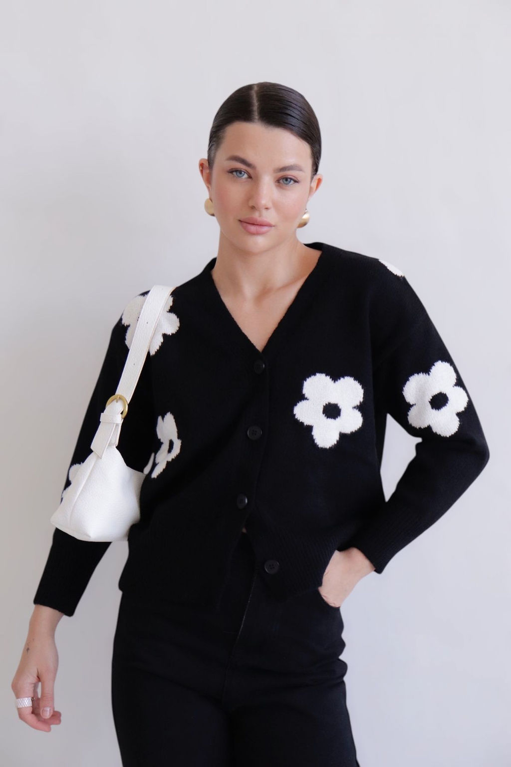 Martichelli Кардиган чёрный с белыми цветами