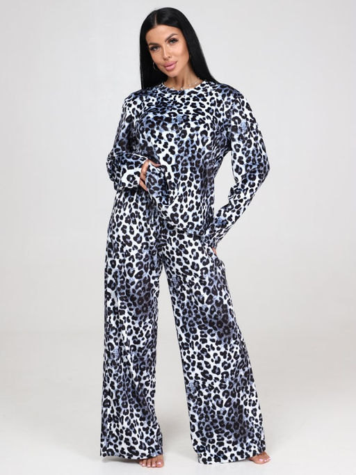 450 ЖЕНСКАЯ ПИЖАМА (брюки) (Голубой леопард)