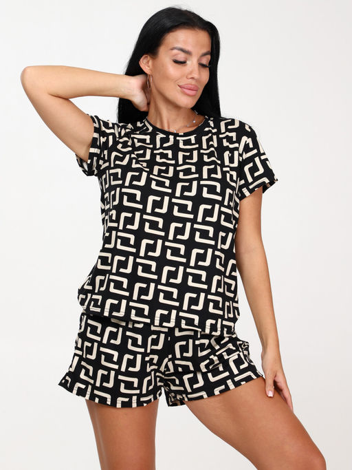052 ПИЖАМА ЖЕНСКАЯ (шорты) (Бежевые цепи)