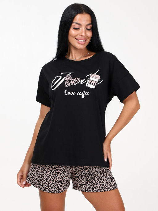 984 ПИЖАМА ЖЕНСКАЯ (шорты) (Чёрный/бежевый (полоса))