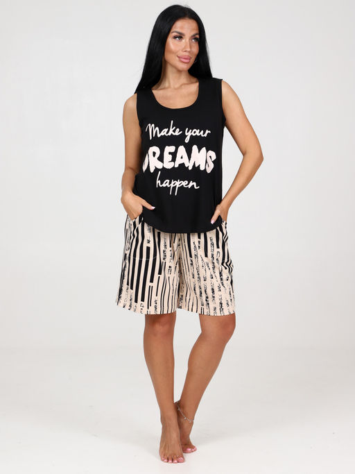 785 ПИЖАМА ЖЕНСКАЯ (шорты) (Черный/бежевая полоса)