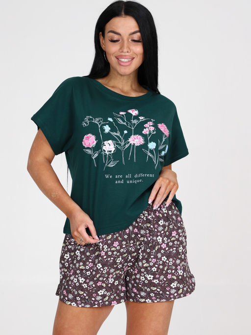 231 ПИЖАМА ЖЕНСКАЯ (шорты) (Изумруд/коричневый)
