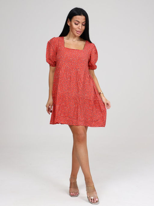 019 ПЛАТЬЕ ЖЕНСКОЕ (Морковный/цветочки)