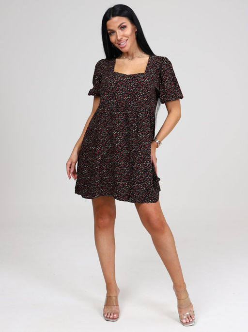 019 ПЛАТЬЕ ЖЕНСКОЕ (Чёрный/цветочки)