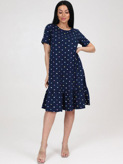810 ЖЕНСКОЕ ПЛАТЬЕ (Сердечки на тёмно-синем)