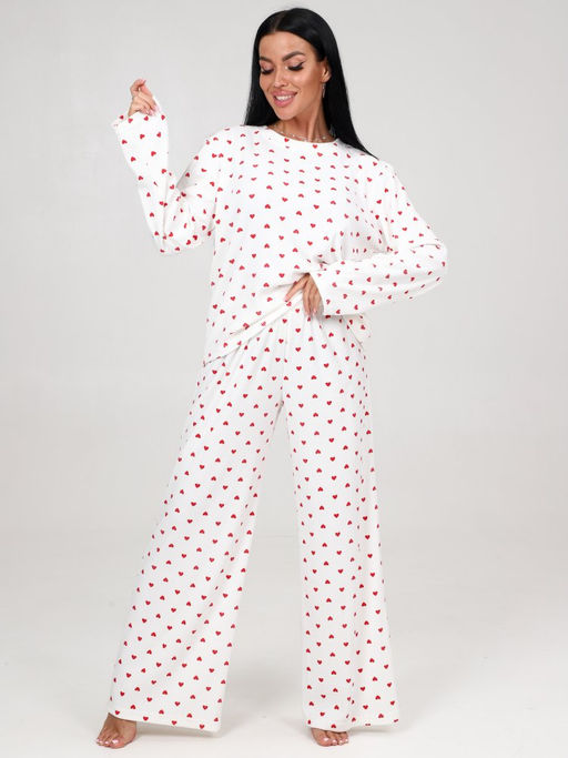 444 ПИЖАМА БРЮКИ (Сердечки (молочный))