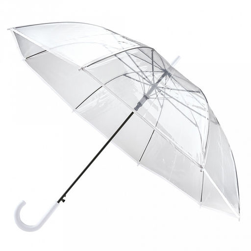 Зонт-трость полуавтомат "Кристалл" POE (полиолефиновый эластомер), прозрачный с окантовкой, 8 лучей, д/купола 100см, 80см в сложенном виде, механизм против ветра, пластмассовая ручка, цвет белый, 370гр (Китай)
