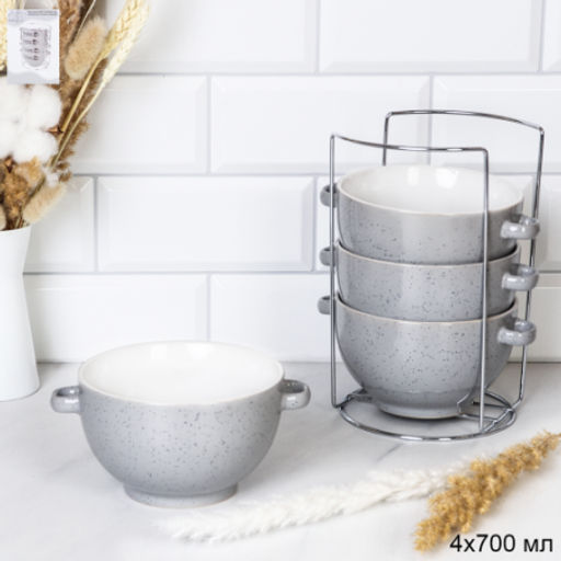 Тарелка глубокая суповая 4 штуки на подставке / RT-652 /уп 6/ Серый в крапинку С