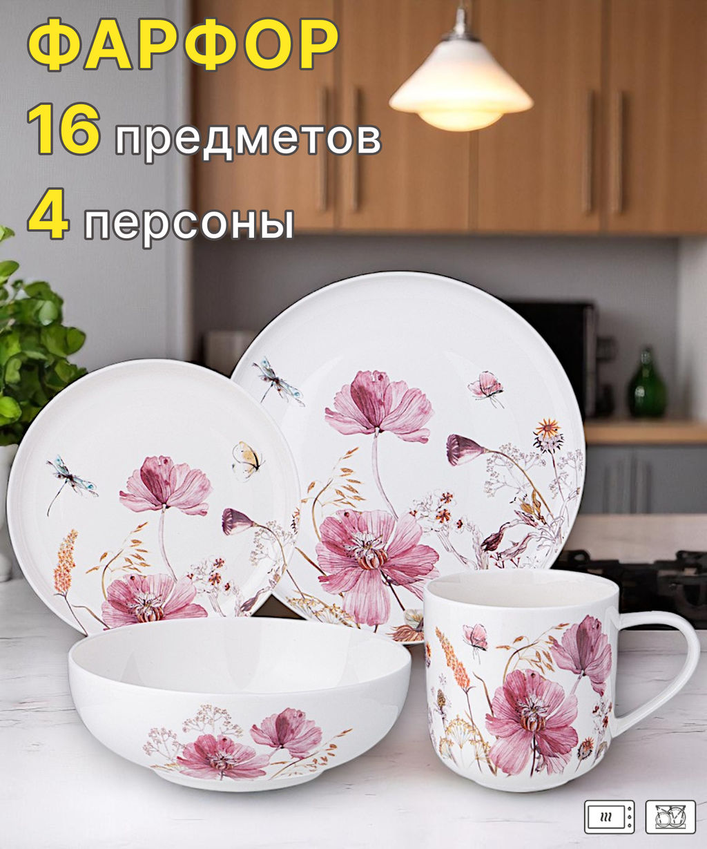 НАБОР ПОСУДЫ ОБЕДЕННОЙ LEFARD FLOWERS НА 4 ПЕР. 16 ПР.