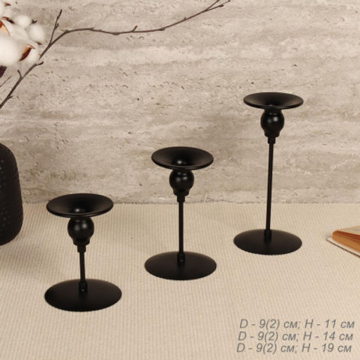 Подсвечники 3 штуки набор d=2/9 h=11/14/19 черные / HA-40 /уп 48/металл