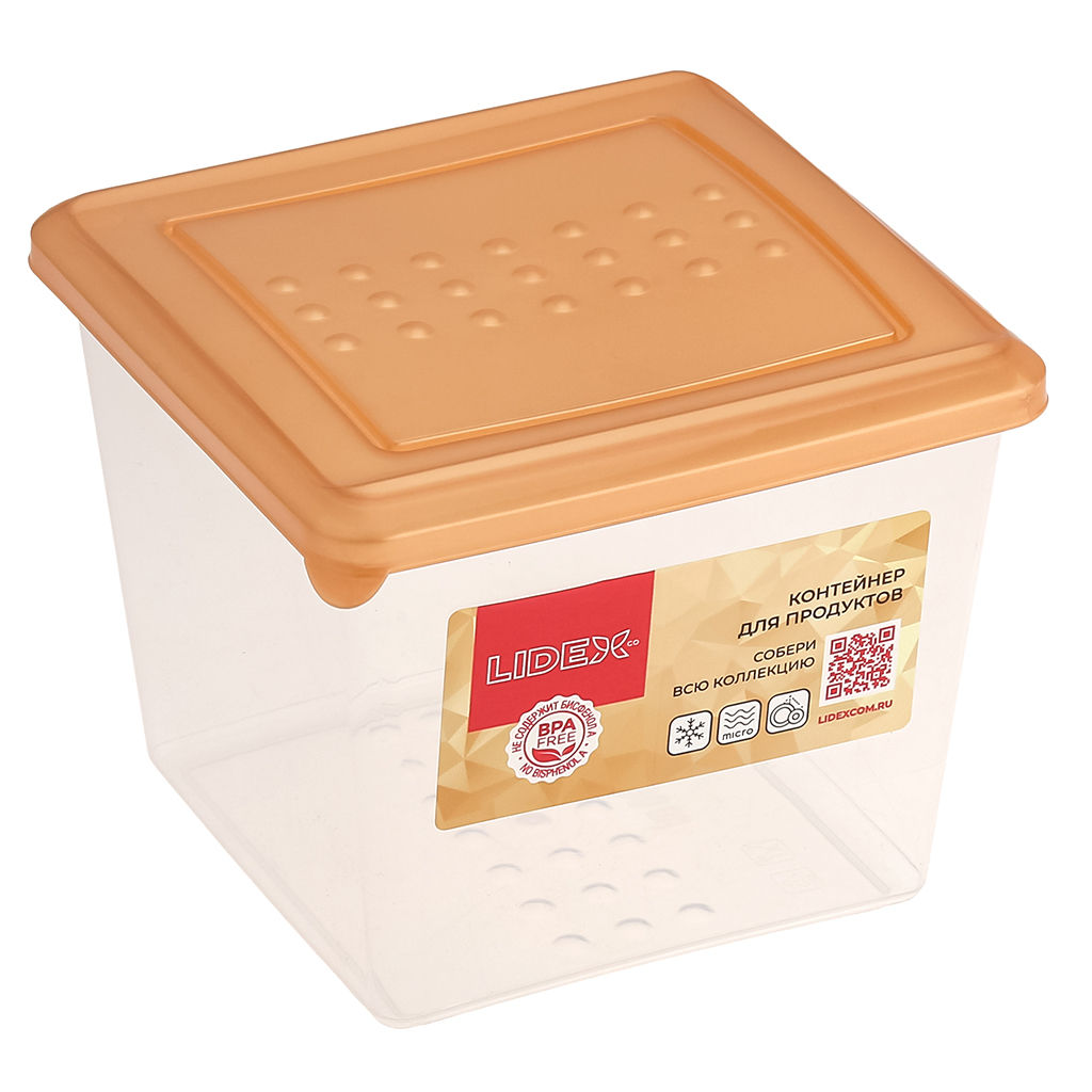 "Sunrise" Контейнер для продуктов пластмассовый 1л, 12,4х12,4х10см, квадратный, золотой, подходит для СВЧ (Россия)