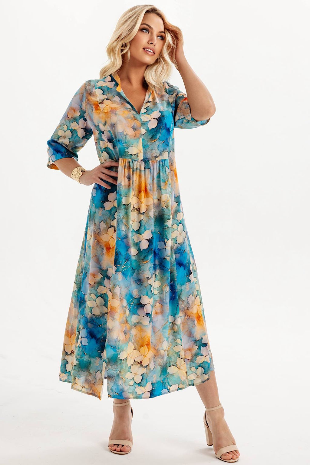 Платье штапель 6143/05/Бирюзовый, бежевый